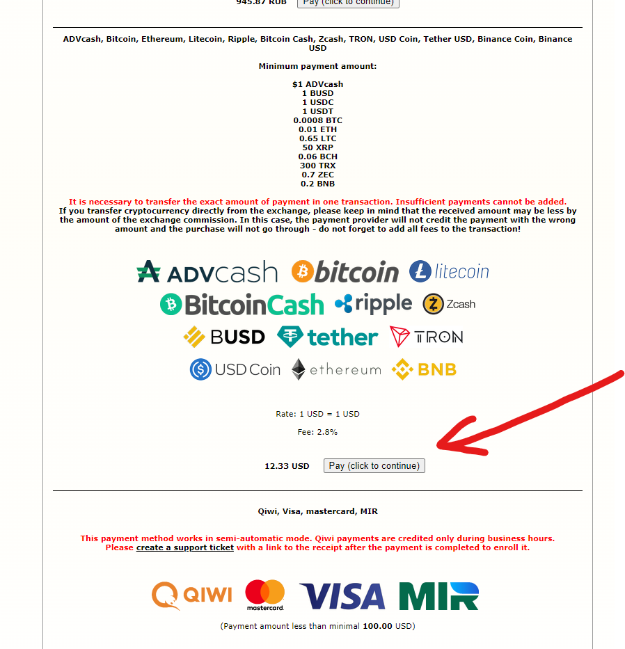 Next, you choose a payment method that is convenient for you (it is best to pay with crypto), for example, let's choose Bitcoin, in this case out of 4 payment methods, we click on the first one, where there is Bitcoin network, and then click "Pay online", as shown in the photo below.