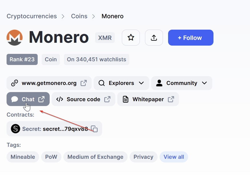 The advantage of this method is that it can be used for both traffic and targeted spam. You can for example write to people in private messages that you have a good method of earning, and are willing to share it for % of the profile. When asked about your benefit, say that you are short-handed and want to expand. Then show your bundle and say to throw on the exchange at least 1000$. Throw less there is no point because of the commissions for transfers. People can be found in crypto chats, Discord channels, etc. Very well for this site is coinmarketcap.com. On this site, choose any coin, then click on the Chat button. You will either immediately open a telegram chat with this coin (where your victims will sit), or there will be a choice: telegram chat/discord channel.