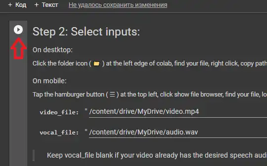 Tải nguồn của bạn lên Google Drive mà bạn đã kết nối với ô.