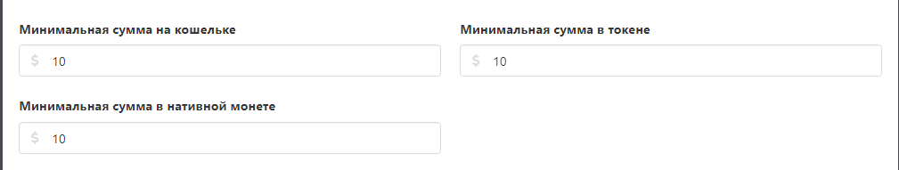 Customize the minimum amounts to request a withdrawal. Can't be less than 10, it's not particularly cost-effective to withdraw pennies and spend 10 times as much gas to do it. May be useful when working manually with SI. At the moment when a user goes to the site to check with a low balance - by setting the minimum amount in the admin -> no withdrawal request will be made.