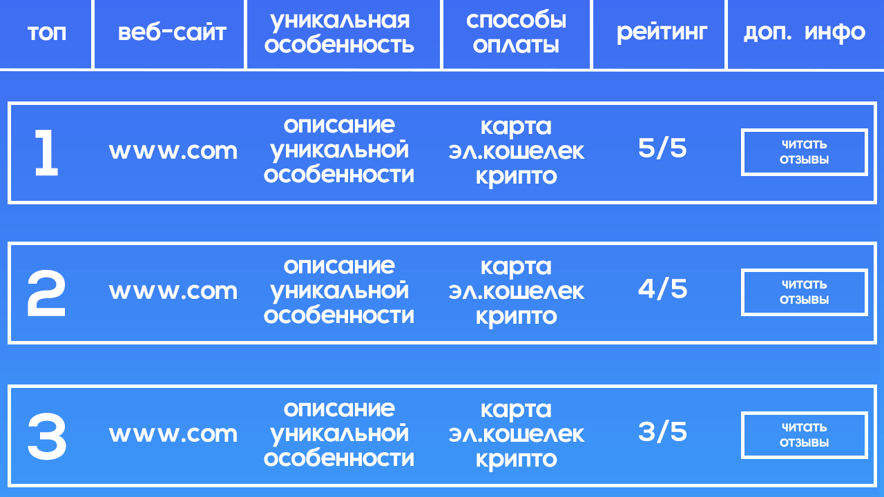 Сайт с обзорами