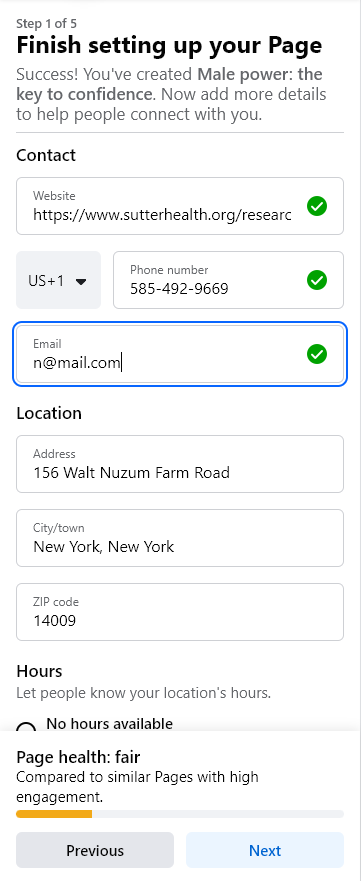 осле успешного создания страницы, заполните все поля из ранее подготовленного материала: